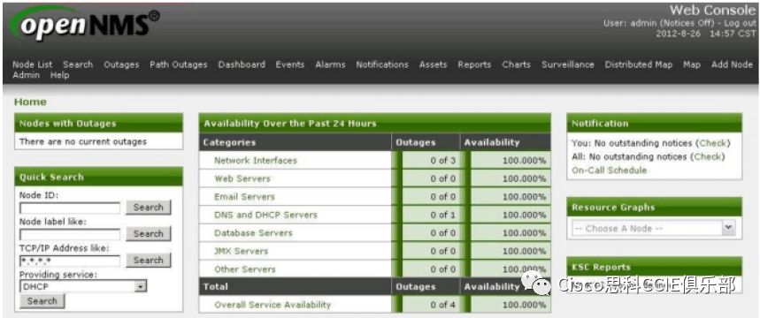 OpenNMS可用来自动发现网络节点,监控网络服务,如 HTTP,DNS,SSH等。
