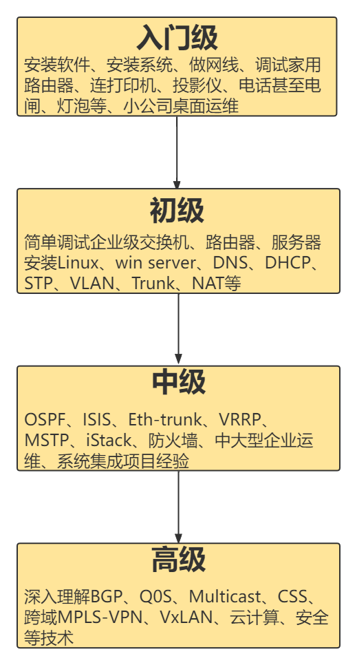 对比这个数通技术的职业路径,你看看自己目前的知识点,能到啥水平了?