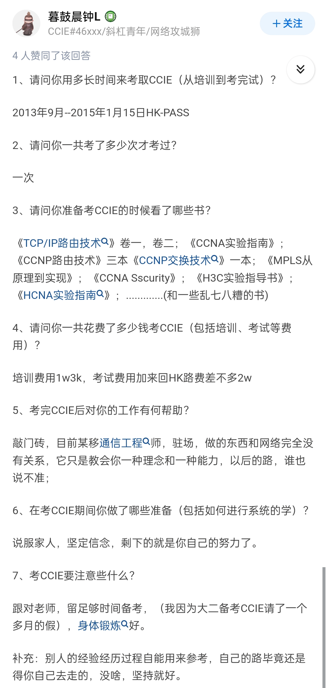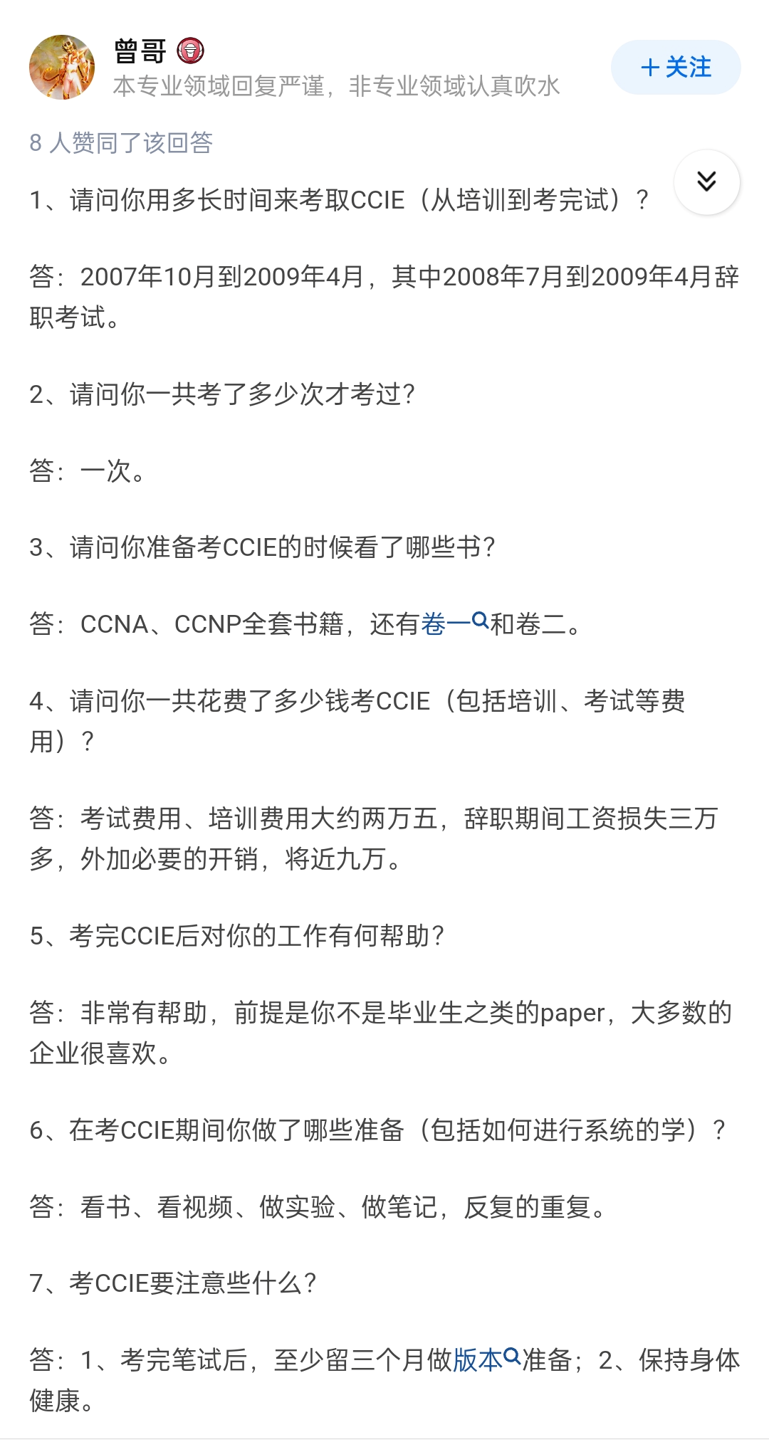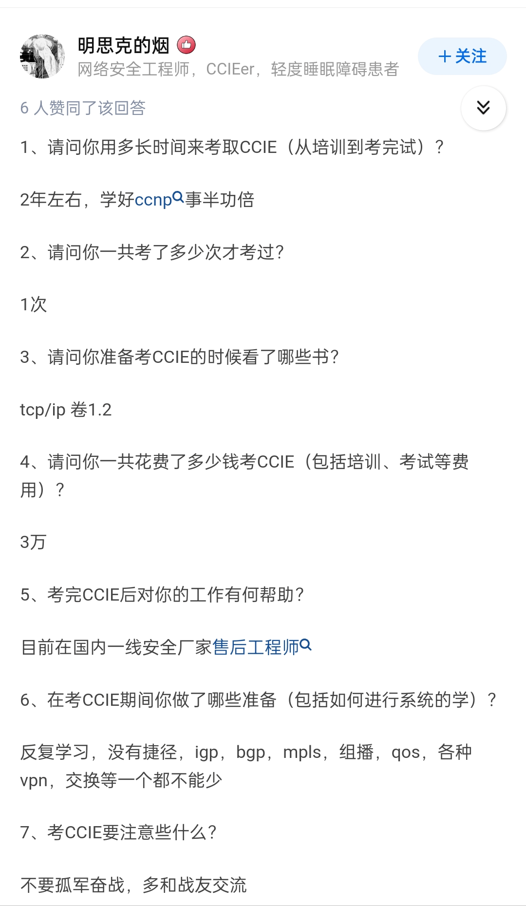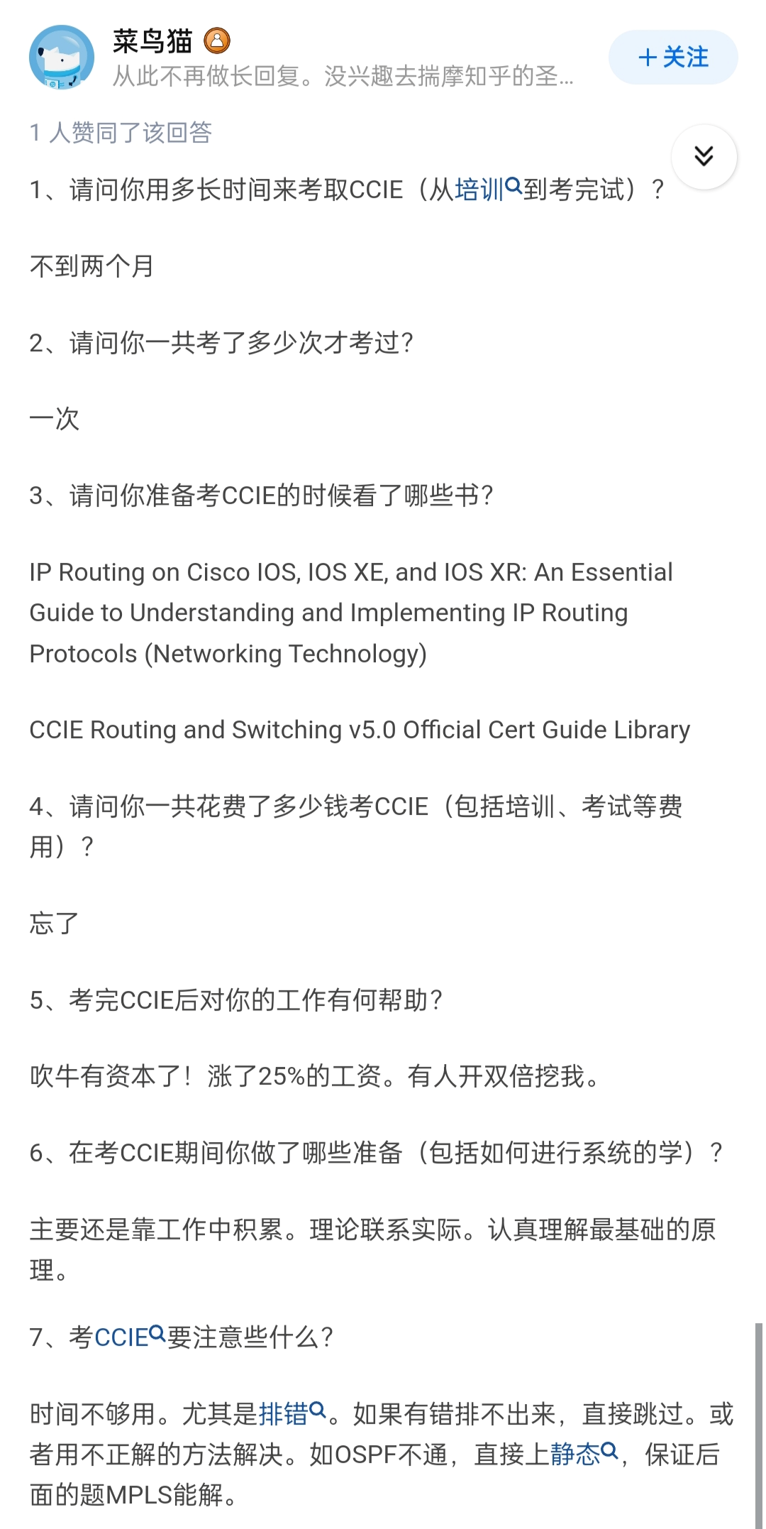 顺便分享一下我的回答吧,毕竟我也是CCIE出身的,加一个我的回答,或许也能给你一点启发。