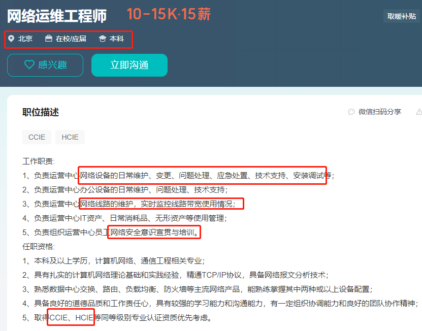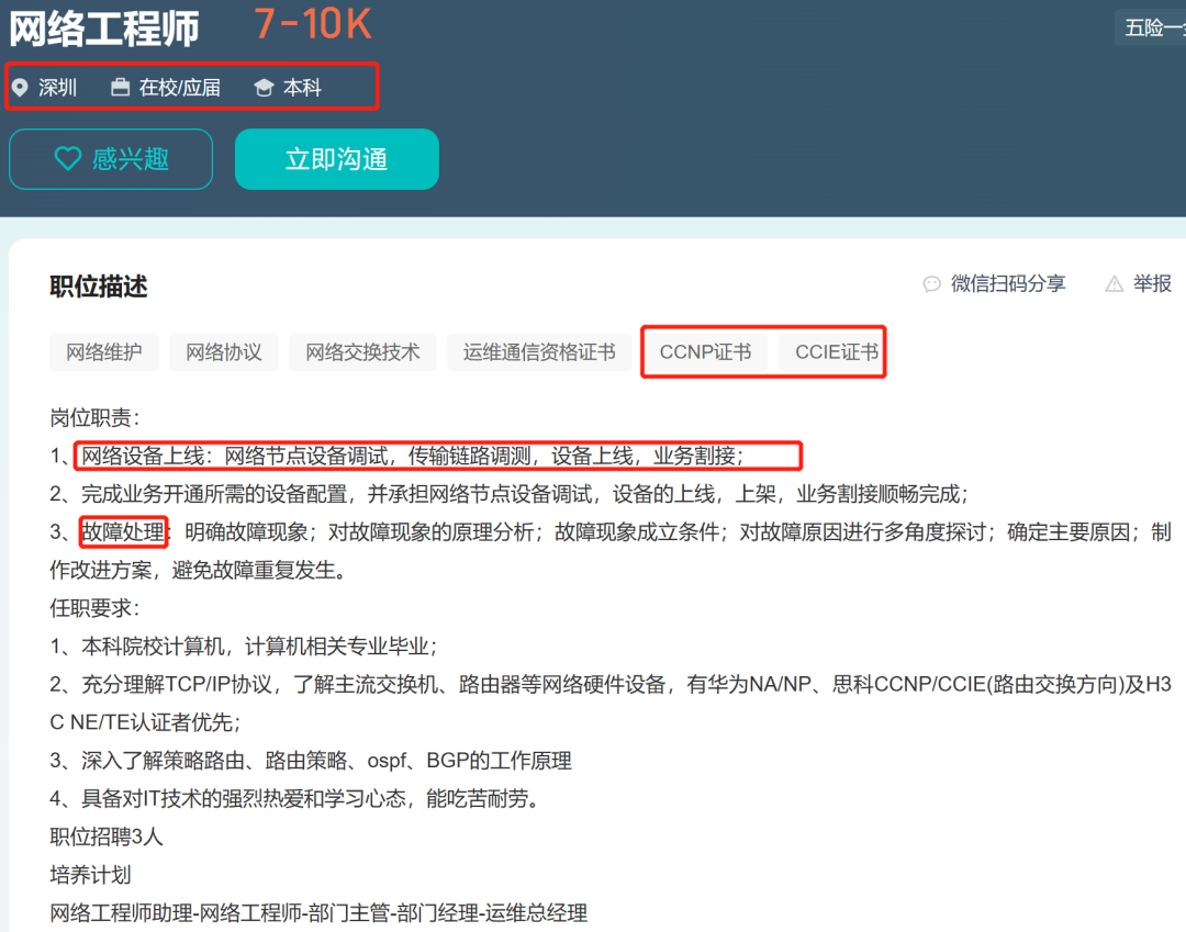 针对已经决定好,未来从事网工专业方向工作的应届生小友: