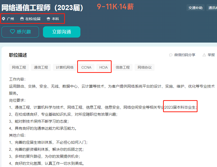 有HCIP及以上的证书,可以拿到9-11K·14薪的工作。