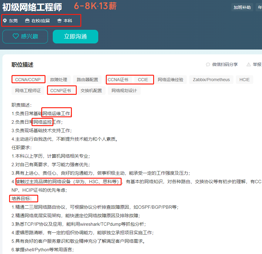 有HCIP及以上的证书,可以拿到6-8K·13薪的工作。