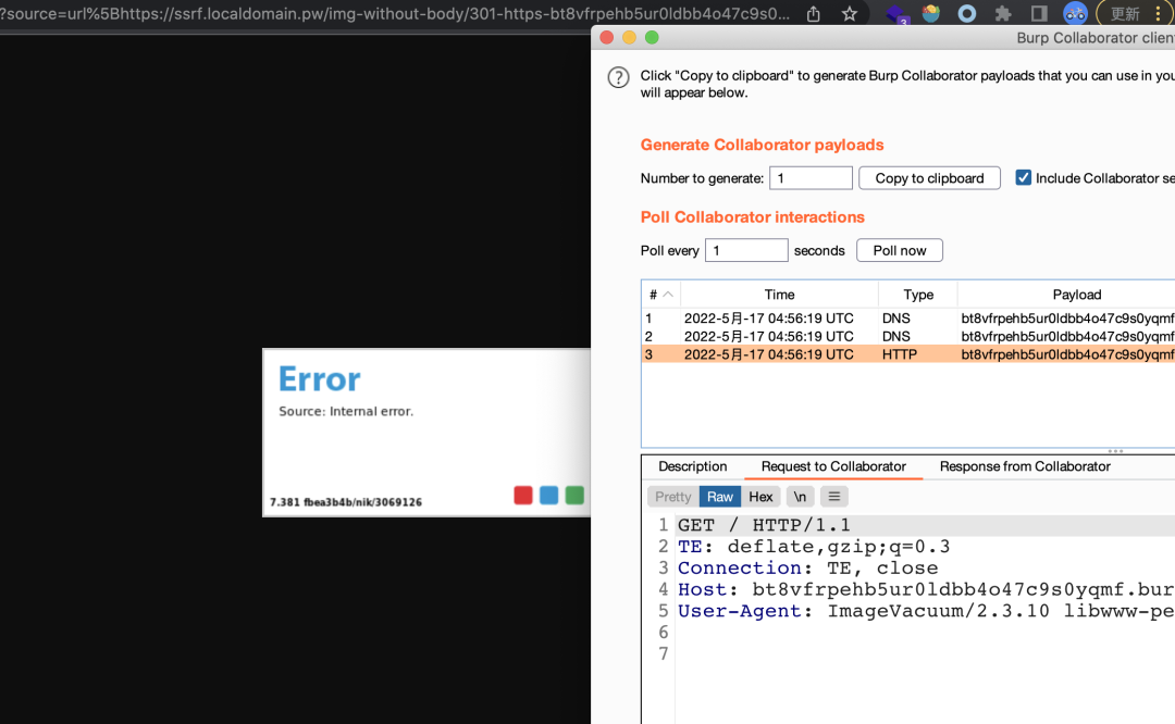Host: bt8vfrpehb5ur0ldbb4o47c9s0yqmf.burpcollaborator.net