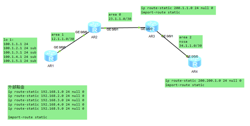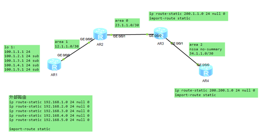 1.该区域下的ASBR可以引入外部路由,以七类LSA引入。