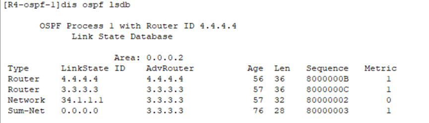 Sum-Net又称三类LSA,汇总LSA由ABR产生,主要描述区域内某个网段的路由。