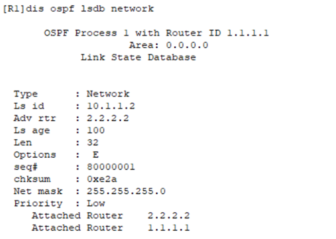 说明:与DR非直连的路由器,通过二类LSA中的Ls id与Net mask做与运算,算出这条路由。