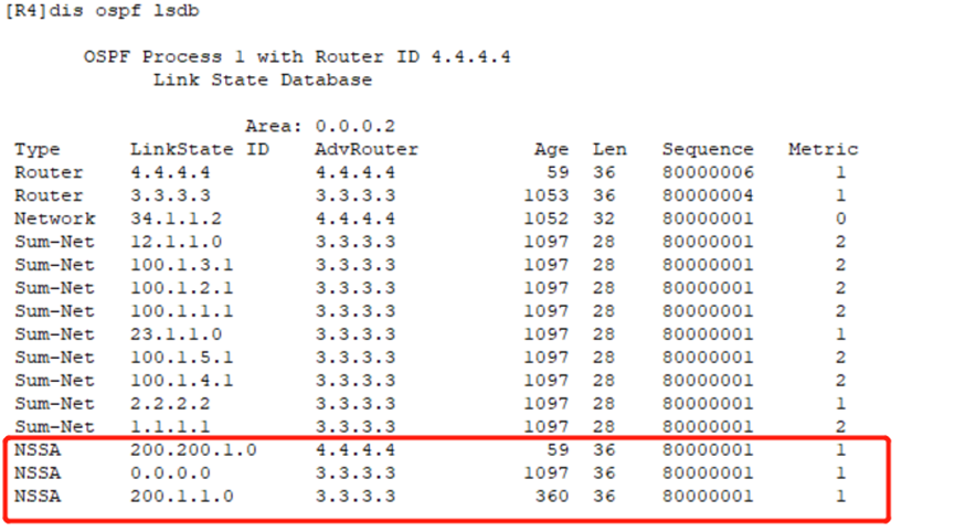 2.其他区域的ASBR产生五类LSA不能在该区域下泛洪,也不产生四类LSA。
