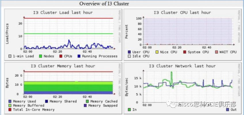 主要是用来监控系统性能, 如:cpu、mem、硬盘利用率, I/O 负载、网络流量情况等,通过曲线很容易见到每个节点的工作状态,对合理调整、分配系统资源,提高系统整体性能起到重要作用。