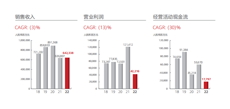 2022年的整体营收,较2020年最高点的8914亿下滑了27.9%,是大退步。