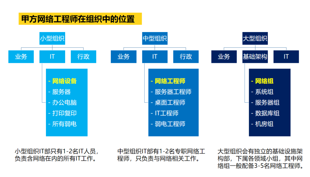 随着组织规模和网络规模的扩大,对网络工程师自身能力依赖的比重逐渐降低,对工具和流程依赖的比重逐渐提升。