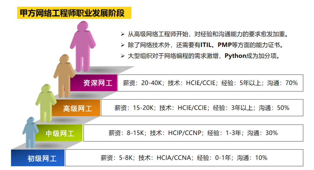 网工要往上发展,不能只靠单一的网络技能,比如,你还需要: