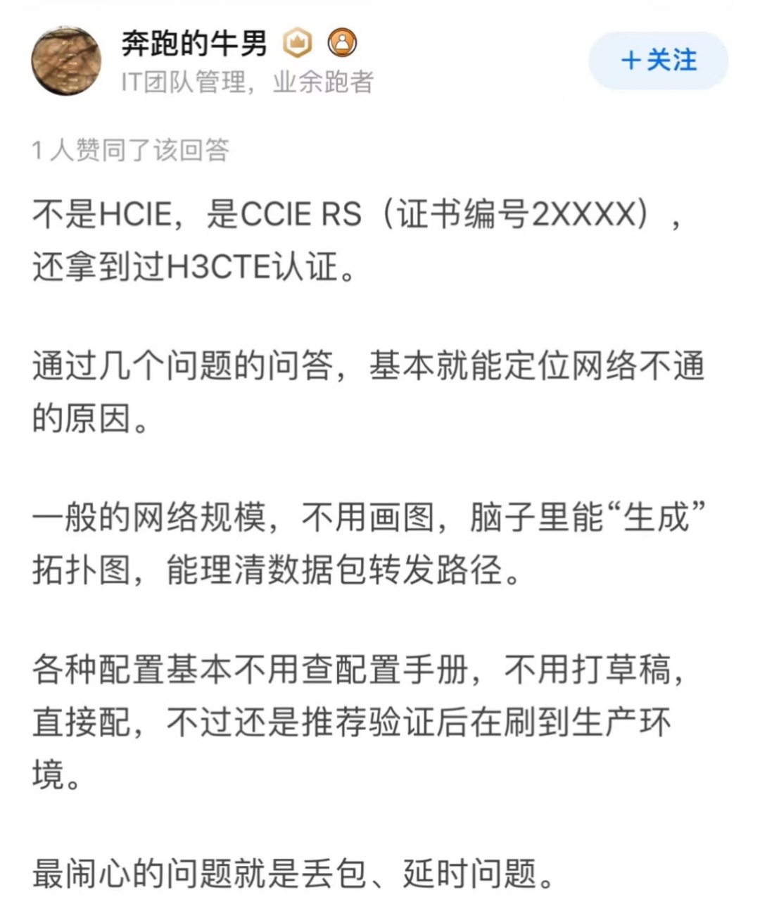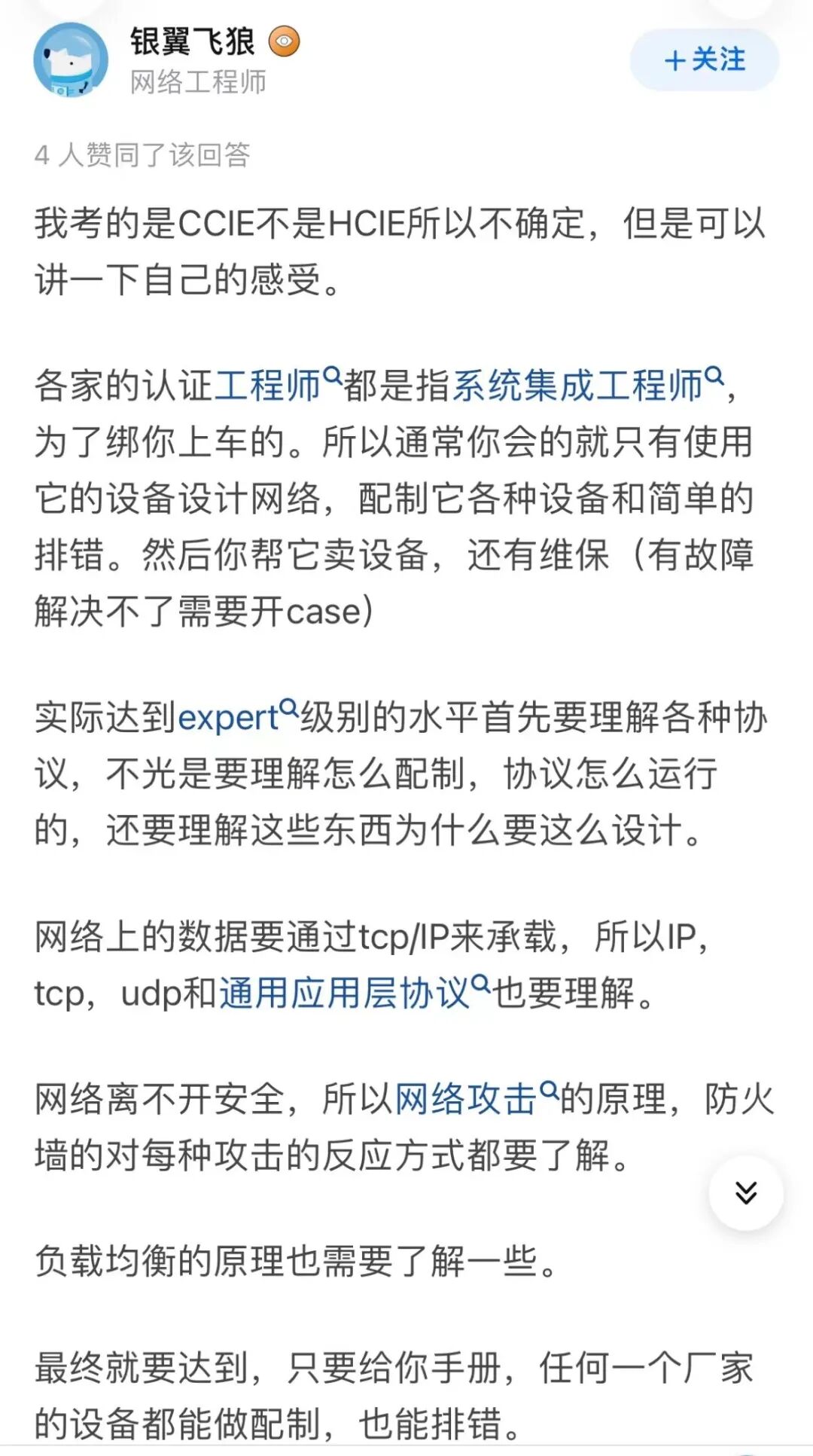 先给你看一波,知乎大佬的神评,在他们眼里,到底真正达到HCIE级别的网工,是啥样的?