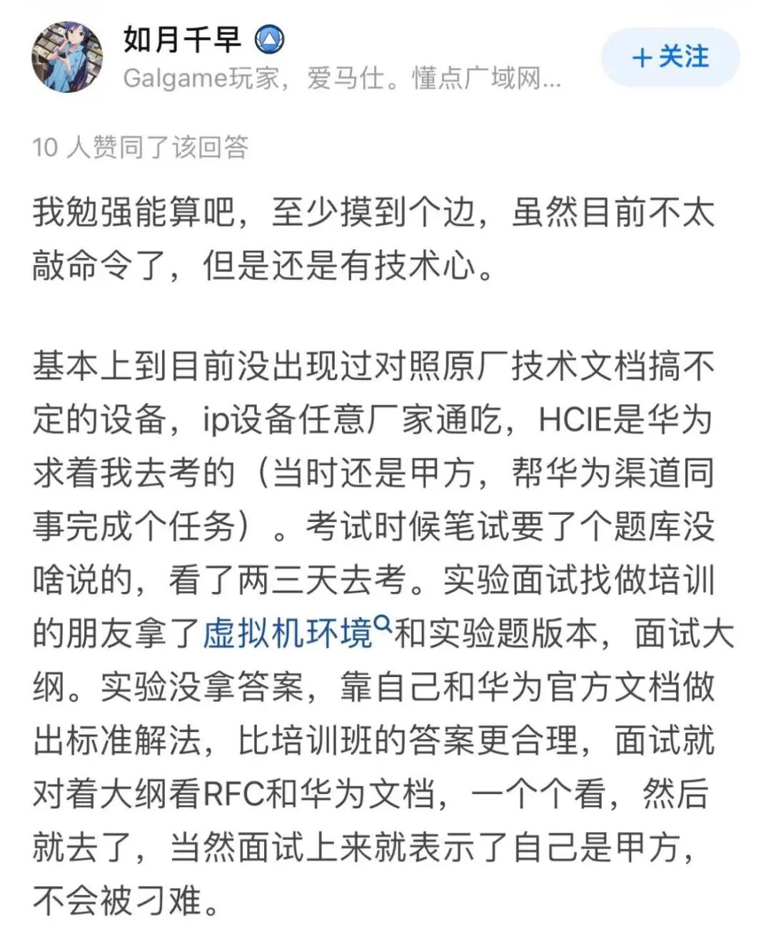 都说有HCIE证书只是有证书,但达不到真正的HCIE水平。