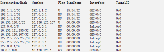 比如,收到一个目的地址为10.0.0.1的报文,路由器就可以查表得知需要将该报文发送到GE1/0/0这个接口。