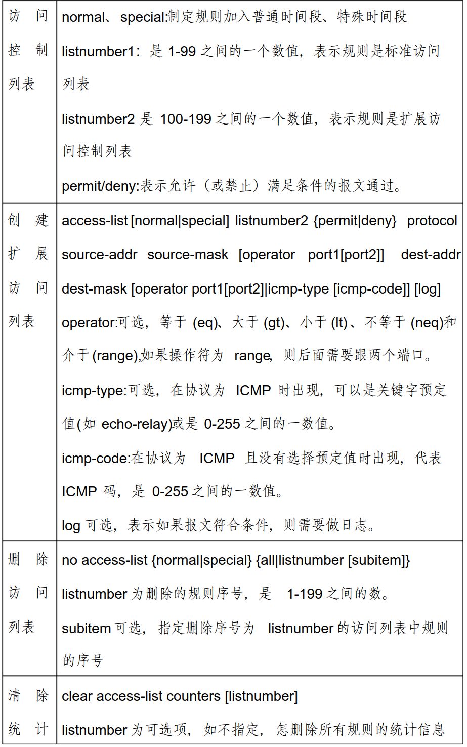 是路由器和交换机接口的指令列表,用来控制端口进出的数据包。Access-list 用于创建访问规则。