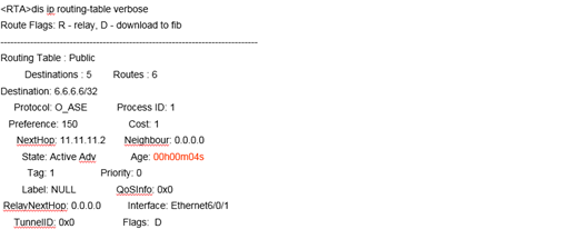 如上表所示,如果该路由频繁振荡,其Age值很小,基本上是秒级的。