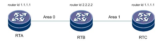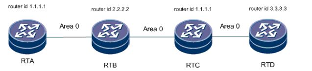 如上图所示,其中RTA和RTC的Router ID是冲突的,但RTA和RTC不在同一个区域。