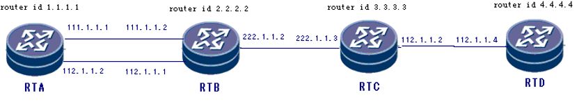 RTA、RTB和RTC、RTD在区域0建立OSPF邻居关系,RTA和RTC的router id都是1.1.1.1,发生了冲突。