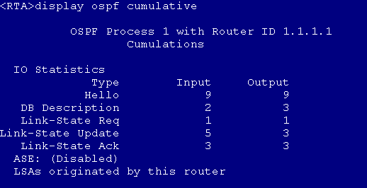display ospfinterface <接口名>查看接口收包和发包数量(V3R3及以后的版本)。