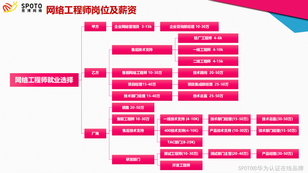 网工的细分职业,基本上是分为了售前工程师、售后工程师、实施工程师和维护工程师。
