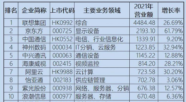 2022年,在ICT行业,综合实力TOP10公司分别是: