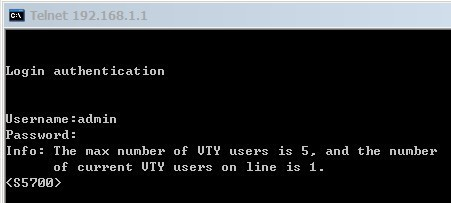 设置完毕,这时可以在cmd里telnet 网关,即可登录到交换机。