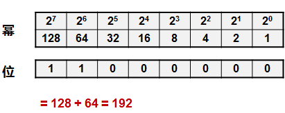 以下是192这个数字,对应的二进制算法,这里就不再赘述了哈,这是基本技能。