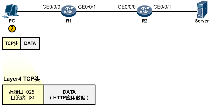 源端口号为随机产生的端口号(是PC本地专门用于本次会话的端口),目的端口号为80(HTTP服务对应的默认端口号是80)。
