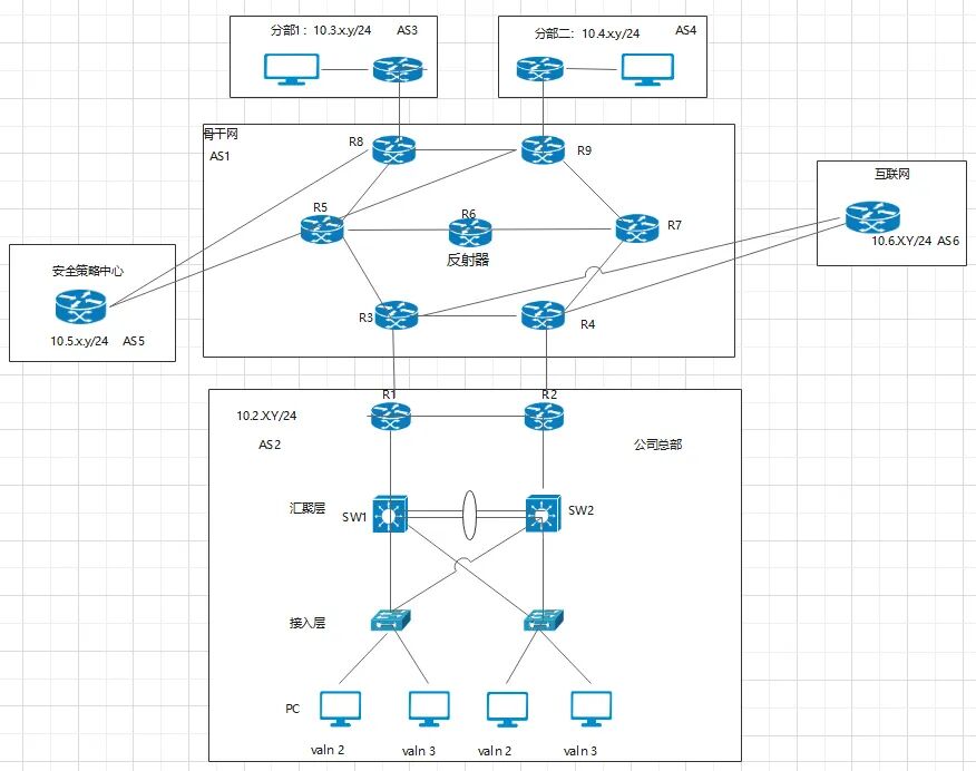 R3,R4,R8,R9为反射器客户端(配置相同)。