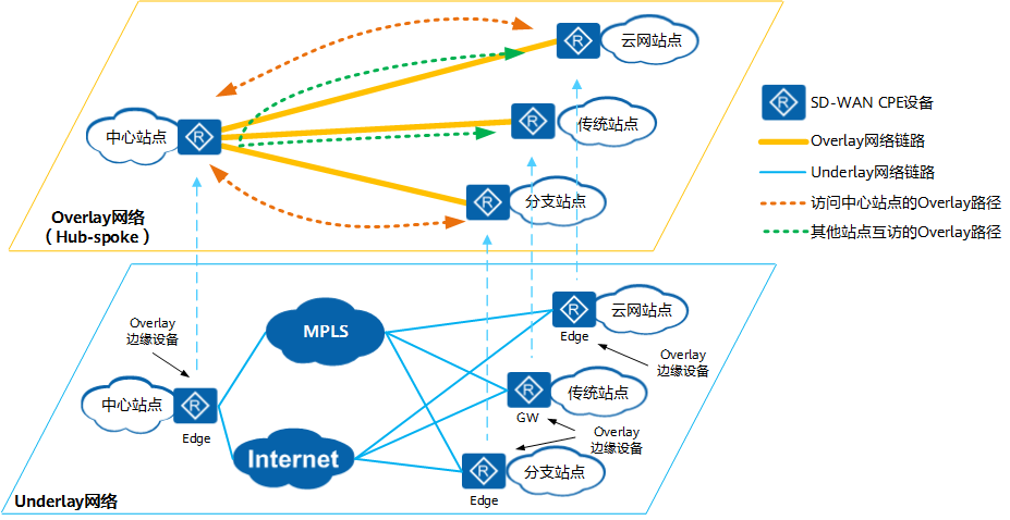 GW:是联接SD-WAN站点和其他网络(如传统VPN)的网关设备。