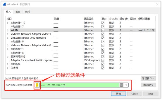 ip host 183.232.231.172表示只捕获主机IP为183.232.231.172的数据包。