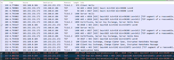 Step3:输入过滤条件获取待分析数据包列表 ip.addr == 183.232.231.172