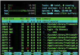 htop 可让用户交互式操作,支持颜色主题,可横向或纵向滚动浏览进程列表,并支持鼠标操作。