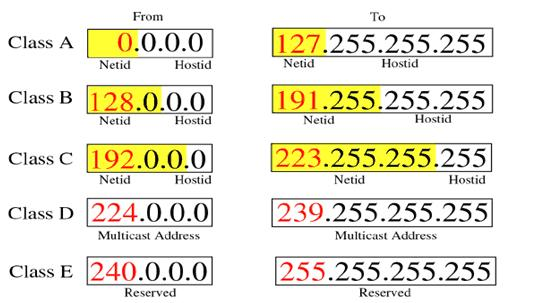 A类一般用于政府、B类一般用于公司、C类一般用于共用、D类一般用于组播、E类一般用于实验。