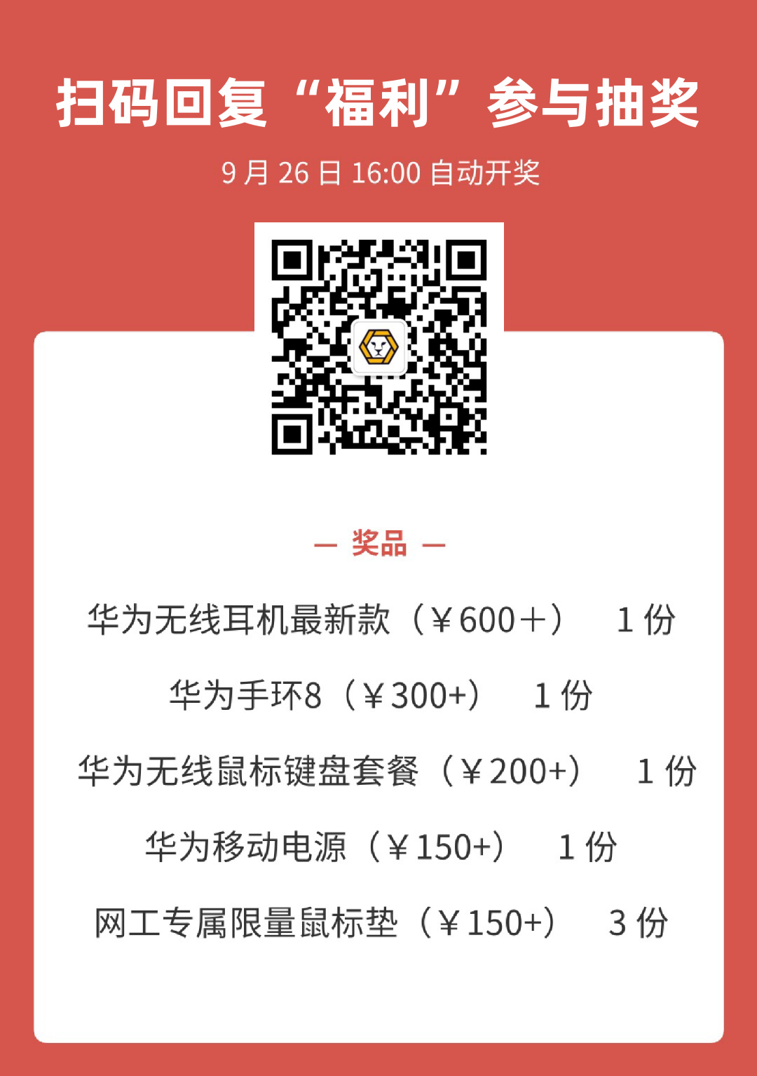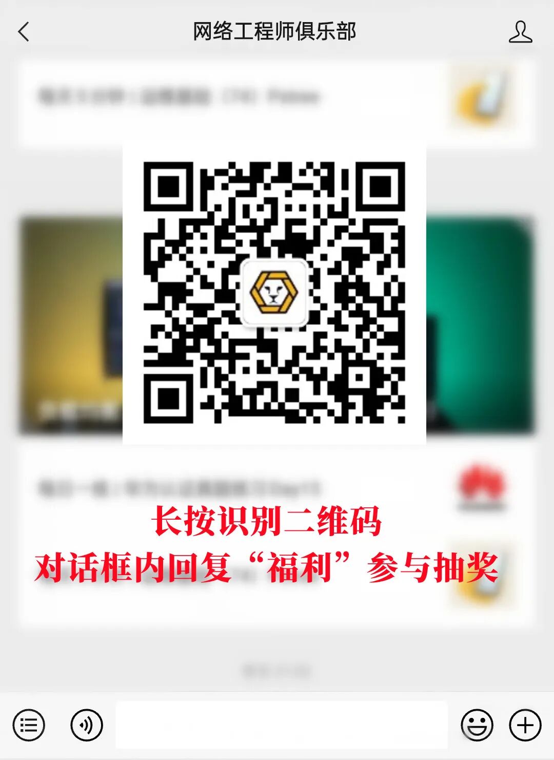 关注本公众号“网络工程师俱乐部”,在对话框内回复关键词“福利”,免费参与本月抽奖。