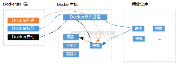 接下来给你展开说说Docker的客户端、主机和守护进程。(根据上面这张图来看哈)