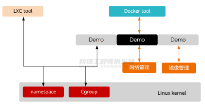 如上图所示,Docker与LXC实现容器都是通过Linux kernel的namespace与Cgroup机制实现。