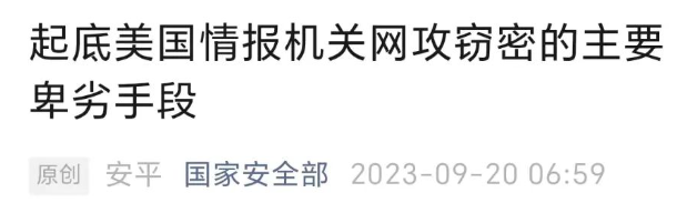 其实9月11号国安部就发布过一些间谍的相关情况,然后今天又做了个正式文章,起底美国情报机关网攻窃密的主要卑劣手段。