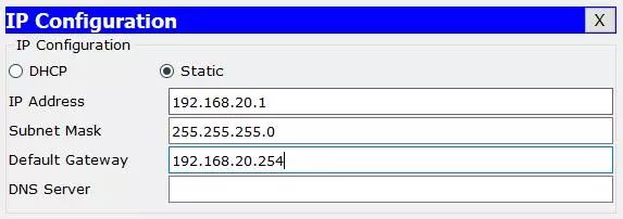 Switch(config-if)#ip address 192.168.20.254 255.255.255.0#设置SVI20的ip,该地址是vlan20的网关