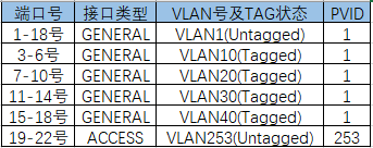 本例中三层网管交换机的端口1连接路由器,端口2连接AC,具体VLAN划分和端口规划情况如下所示: