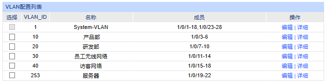 其余VLAN重复步骤即可,完成后VLAN列表如下: