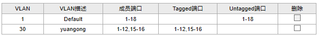 端口类型为Tagged的16口作为级联口,保持默认PVID值为1即可。设置后如下如所示: