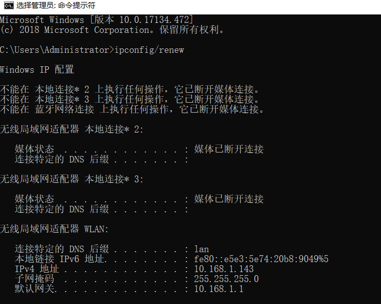 这时网络会重新连接,但ip地址已经与原来不一样了,重新分配到了可用的ip地址连接网络了。