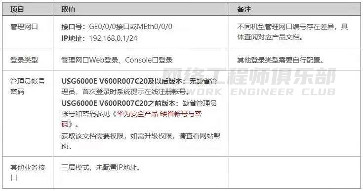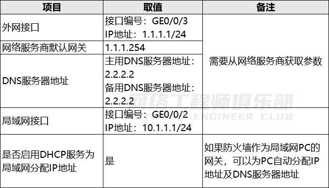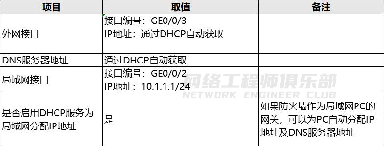防火墙设备出厂配置如下表。