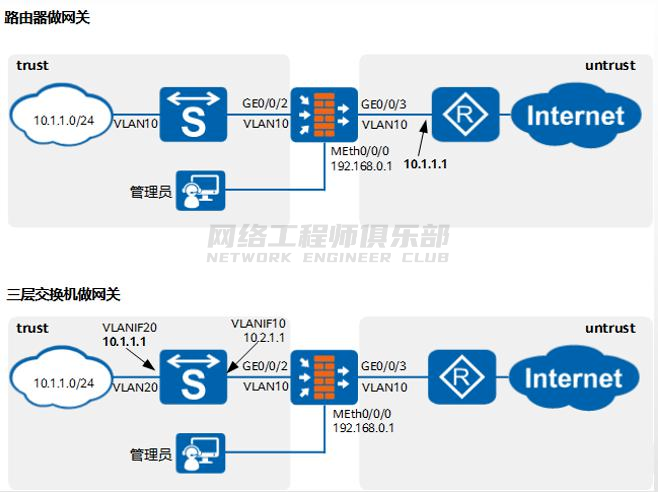 当三层交换机做内网用户网关时,可以选择防火墙做源 NAT。