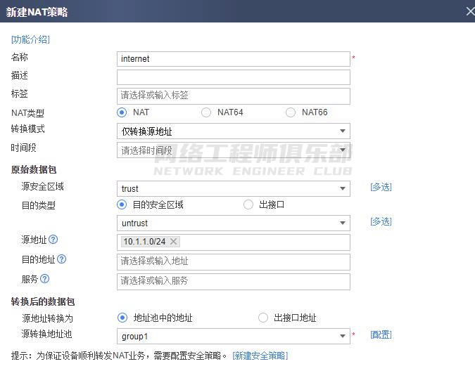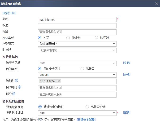 4. 可选:配置源 NAT 转换内网用户 IP 地址。