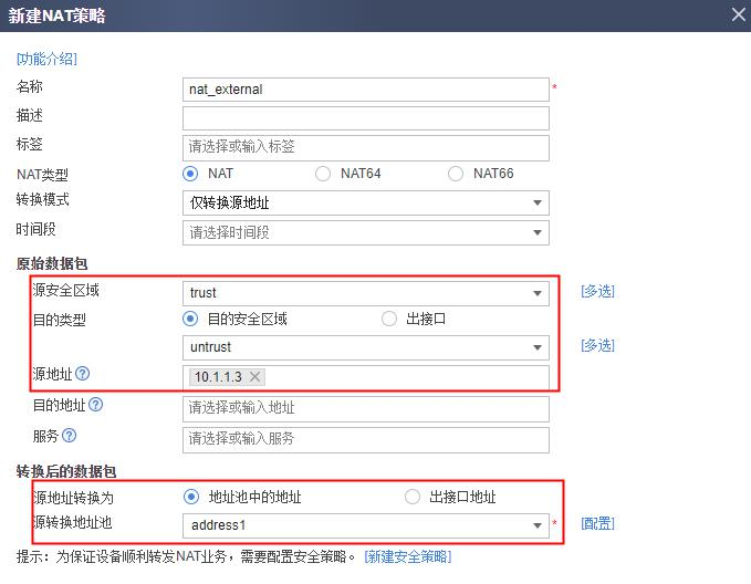 3. 可选:如果接口 IP 是私网地址,还需要配置源 NAT。