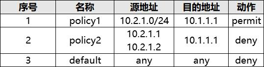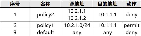 企业的一台服务器地址为 10.1.1.1,允许 IP 网段为 10.2.1.0/24 的办公区访问此服务器,配置了安全策略 policy1。