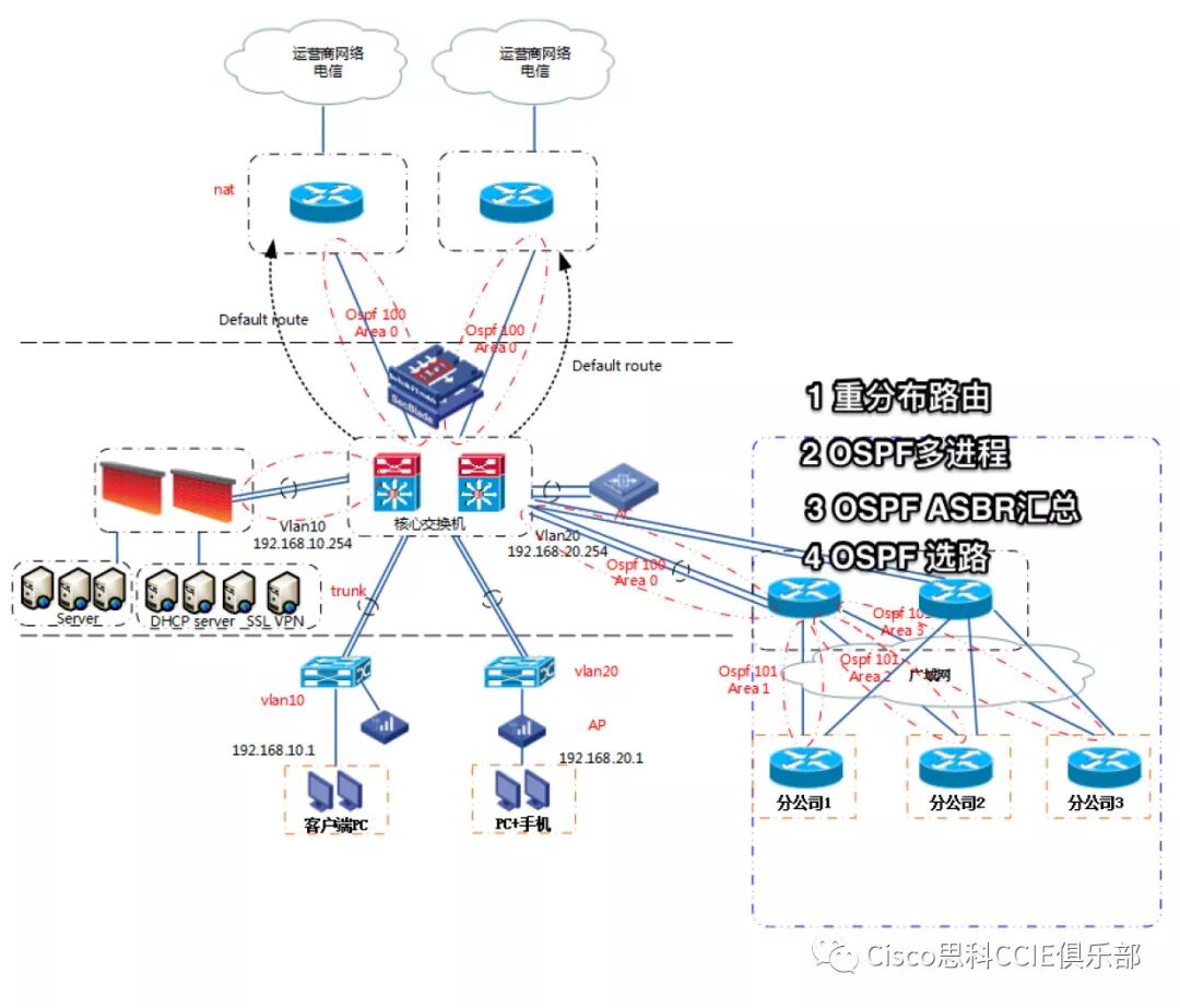 ⏩知识点:路由重分布、ospf多进程、ospf外部路由汇总、ospf选路控制