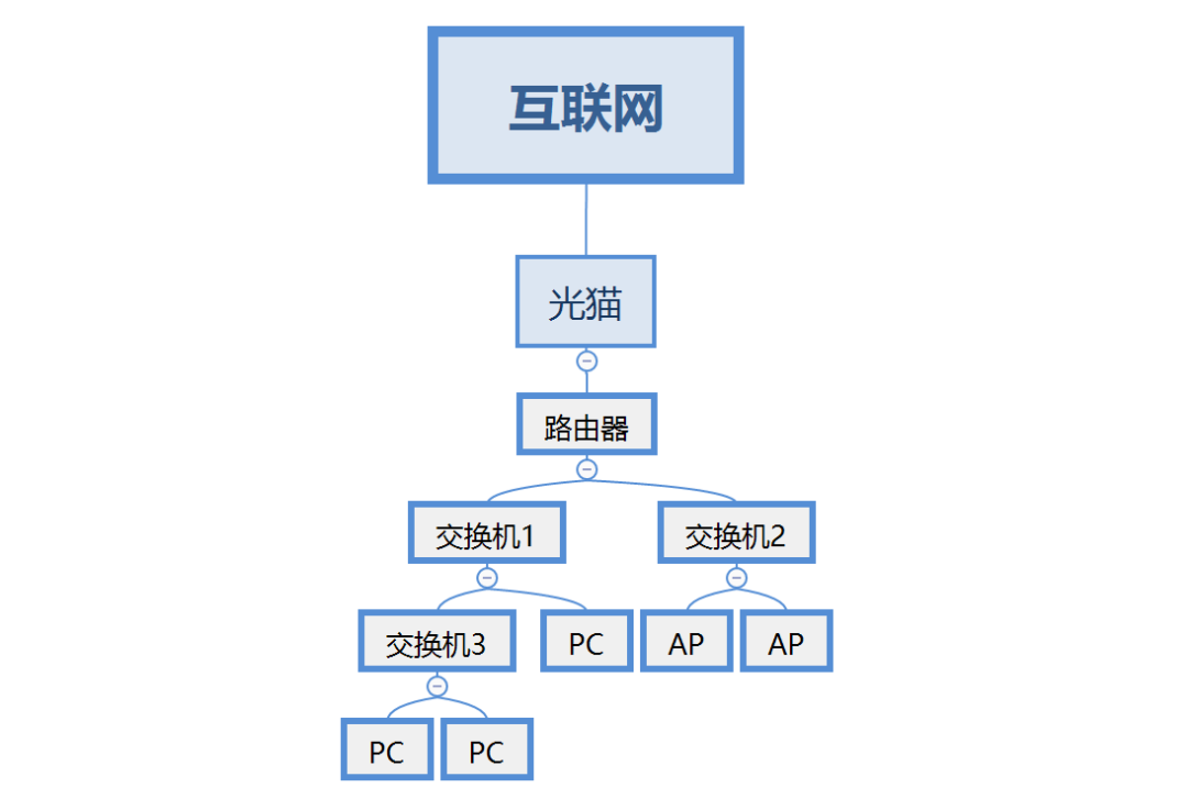 看图是简单,但网络布局并不简单,很多东西要和施工实际情况来看。设备可以大致分为两种: